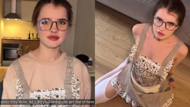 Парень офигел, когда узнал, что родители наняли ему няню, ведь он уже совершеннолетний! Но чувак понял, что надо воспользоваться этим и трахнуть сучку, чтобы заодно договориться с ней не парить ему мозги. И очкастая брюнетка с красивой внешностью согласна на такую сделку, потому что члена у нее уже давненько не было... А тут такой случай! Темноволосая стерва берет пенис за щеку и делает отсос, а после трахается от первого лица и получает сперму на очки.