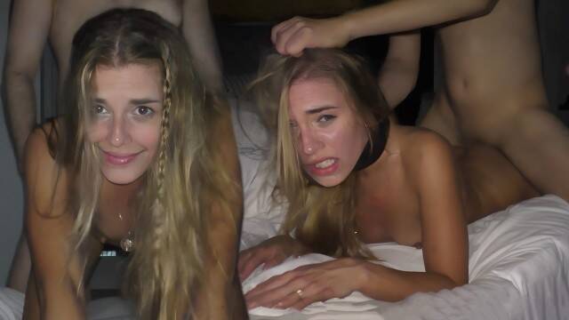 Грубо трахает бедную девушку раком и кончает на сиськи