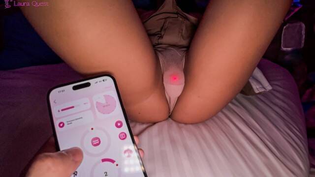 Трется членом об бритую письку сучки в трусиках