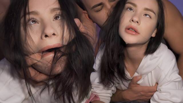 У парня появилась новая телка, которая теперь будет получать от него жесткий секс вместо бывшей, которая теперь страдает. Чувак привел новую пассию к себе домой, где уже с порога стал приставать к ней и склонять к грубому траху в спальне на кровати. Брюнетка встает перед ним раком и начинает заниматься с ним страстной любовью, от которой громко стонала. Он держит ее за волосы сзади, а потом кончает ей прямо в ее ротик.